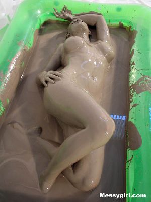It's Liz like you never seen her before. She is covered head to toe in slippery mud. Liz starts out in her sexy mini dress and thigh high stockings and boots. She does a very sexy strip tease in the mud. She covers herself by pouring the mud over her head and dunking her face into the ooze. The transformation into a sexy mud girl is breathtaking!