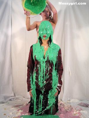 Raven makes Amber her messy sub girl. Amber has her hands tied behind her back as she receives her messy onslaught with pies, slime, melted ice cream and a large sheet cake. Raven shows no mercy on poor Amber as she is coated head to toe in the slop. Amber is set free so she can give Raven a taste of her own medicine. Both girls get very messy and naughty!