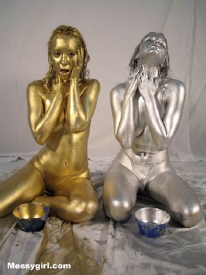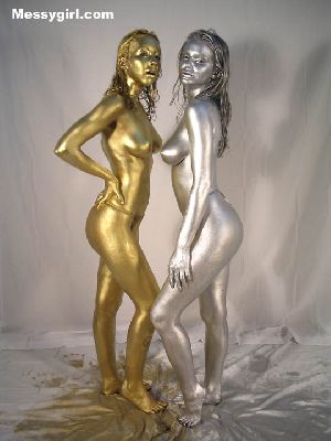 Liz and Lexi paint each other gold and silver. Both girls look so erotic that they can't help themselves and they begin to kiss. A very erotic and artsy shoot as the girls embrace each other.