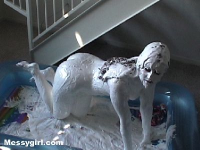 Sara take a bath in gooey, sticky plaster. She is totally covered from head to toe.
