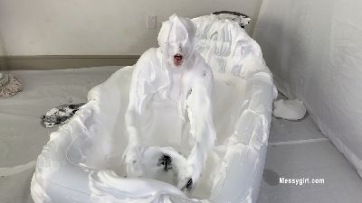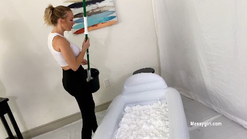 Zoey returns as the clumsy housekeeper. This time she tries to clean out a tub filled with gooey cream foam.