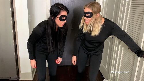 Thieves Zoey and Penelope break into a home that is set with many booby traps. The girls are subjected to hot foots, glue traps, itching powder, spring loaded pies and plaster face plants. They are finished off with a blue ink bomb in the shower.