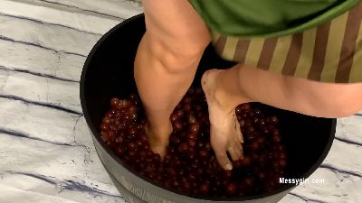 Alice is pied as she stomps grapes