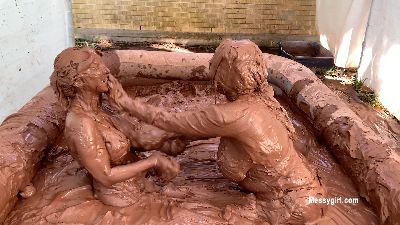 Zoey and her busty friend Alice get down and messy in an outdoor mud pool. Both girls end up covered head to toe as they wallow about and wrestle in the thick sticking mud.