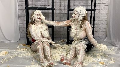 Busty roommates Alice and Serena get into a fun and sexy tit for tat pie fight with each other.