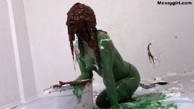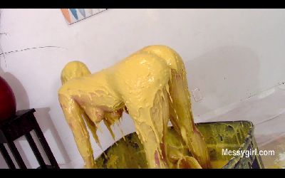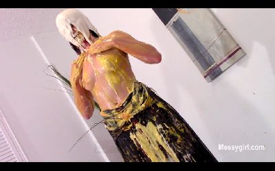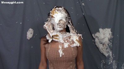 Cute WAM virgin Jessie pays us a visit. She is very nervous and has no idea what to expect. We ask her to tell us a bit about herself and during the interview she is pied. You will love her reaction as she experiences pies for the first time. Next is a batter pour over the head. She tries to keep her compouser as the mess keeps coming. She then takes off her sexy teddy and gets pied topless. She then pies herself and then gets a chocolate batter pour over the head. She is now a complete mess as she gets on all fours and pushes her face in a pie on the floor. She then pours more batter over her head and rubs it all over her now nude body. You get the added bonus of Jessie taking a shower as she is interviewed about her first Messygirl shoot.