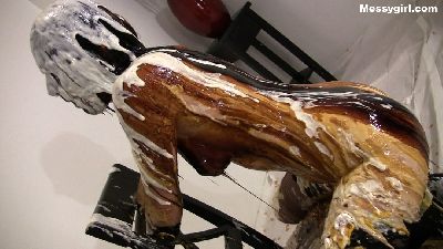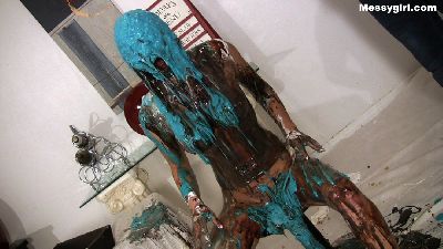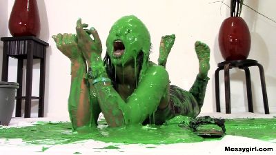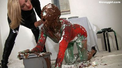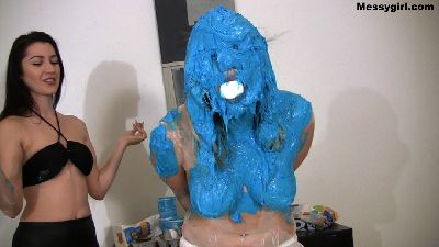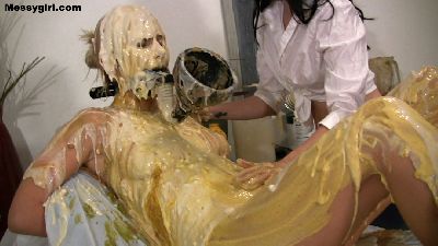 Amy gives newbie Alana her Messygirl initiation. Amy doesn't hold back as she destroys Alana with pies, batter, slime and extreme head dunking. Alana is transformed into an unrecognizable sexy blob by the time Amy is done with her.