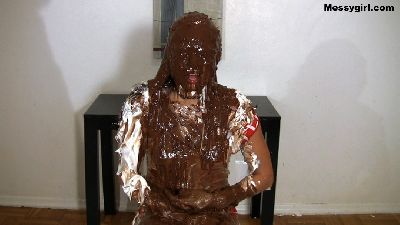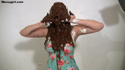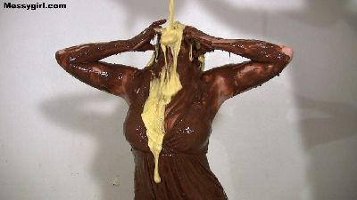 Amy wants to get totally engulfed in sticky marshmallow fluff and break in her new mini hitachi. She starts out in a bikini as she slathers herself in the gooey fluff. Then she takes off her bikini top to expose her clean tits. She then pours a bucket of marshmallow cream topping over her head. When she is totally covered in the cream, she takes off her bottoms and exposes her ass. Now she is ready to break in her new toy. She lets out loud moans as she rubs the vibrating hitachi on her clit and pussy lips. It doesn't take long for her to cum. She then pours dark chocolate syrup over her head and rubs that all over her body. Now she is a slippery gooey mess. She then brings the hitachi to her sloppy pussy for more mind blowing orgasms. Hot stuff!