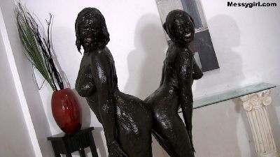 Amy wants to show Jacy what being covered in grease is all about. The girls start out in cotton panties as they begin to cover each other in the sticky black grease. Both girls are having a blast as they strip nude and finish the total coverage on each other. Lots of body contact as they play with the gooey stickiness of the grease. Including giving each other a greasy titty motor boating. Sexy fun!