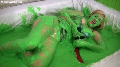 Leila returns and this time she brings along her friend Melissa. We thought it would be fun to introduce them to our first edition of the Messygirl games. The girls will need to compete against each other in a series of messy games. This version will have a pie eating contest, chocolate banana dunking and bobbing for apples in slime. We added the extra twist of having the winner humiliate the loser of each game.