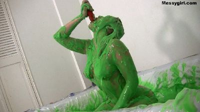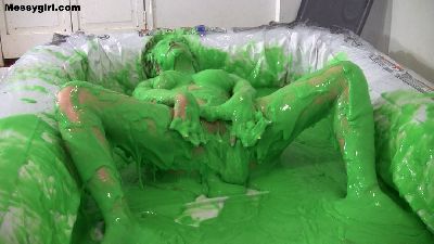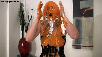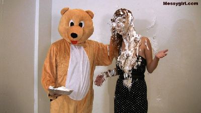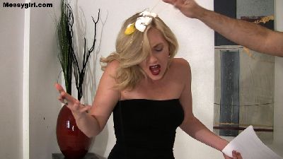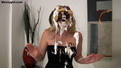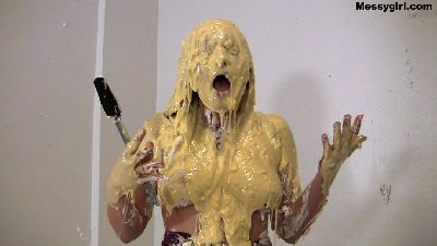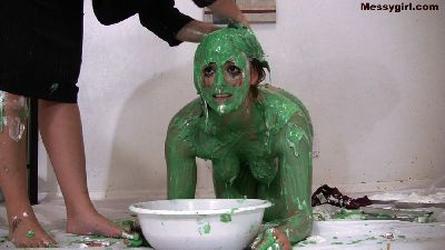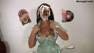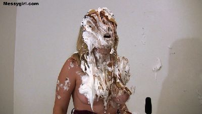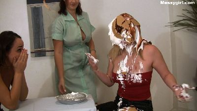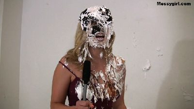 Jacy is on hand to give Karly Salinas her Messygirl initiation. Karly is very nervous as Jacy administers the pies and slime. Total head to toe coverage for Karly.