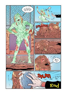 Vika is a bitching customer. She doesn't like her hamburger and lets the manager know about it. When the manager has had enough of her bitching, he shuts her up by stuffing the burger in her mouth. Next comes a savoy onslaught of sour cream, mustard, ketchup, ranch and 1000 island dressings. Poor Vika is a total mess, but the manager is just getting started. Vika is now nude, and her mouth is stuffed with hot dog wieners. She then has cold sour cream rubbed all over her face and tits. This is followed with more mustard. ketchup and salad dressing. Just when she thinks it`s over, out comes the treacle. Vika's head and face are engulfed in the dark sticky stuff. You will get a kick from the gargling sound Vika makes as she breaths with the mess over her face and wieners in her mouth.