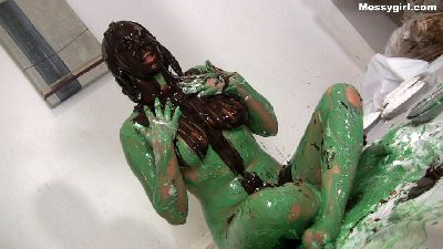 Alternative model XlcrMoon returns and this time she is covered in thick clay. She starts out in a bikini as she steps into the large tub of clay. XlcrMoon is a mud virgin, so her reactions are priceless as she discovers the clay sensation for the first time. Total thick coverage.