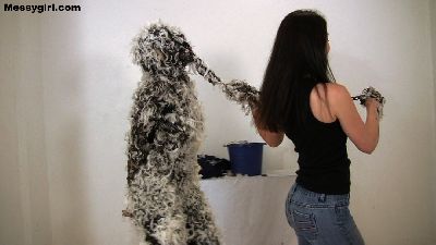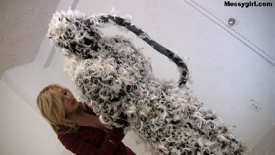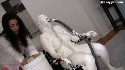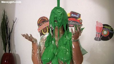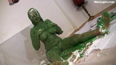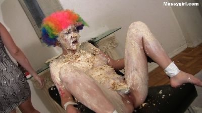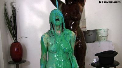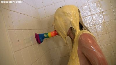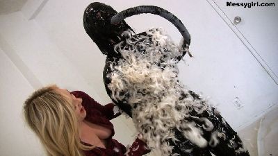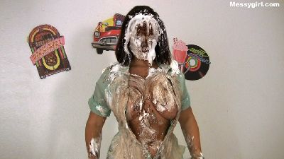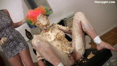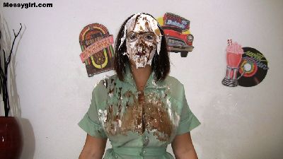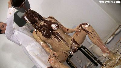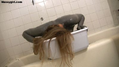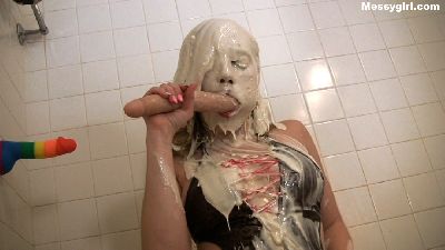 Amy is well dressed and wearing glasses as she wants to prove that even classy girls can get very raunchy. She has a bucket sloppy oatmeal and a bucket of chocolate to do the damage. She crawls to the sloppy oatmeal and dunks her head over and over again in it. Her glasses are still on when she does this. She then rubs the slop all over her dress and body. This is followed with head dunks in the chocolate. It mixes well with the oatmeal as she rubs it all over herself. She then strips nude and plays in the slop on the floor. After one last bucket pour of slop over her head, she plays with her pussy until she cums.
