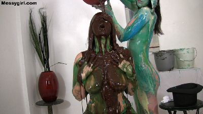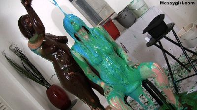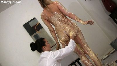 Penelope talks Kylie into doing some extreme wam with black grease and oil. Both girls are nude as they playfully start to smear the grease on each others bodies.Total head to toe coverage for both girls.