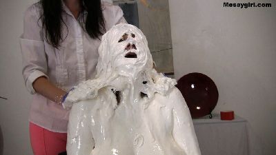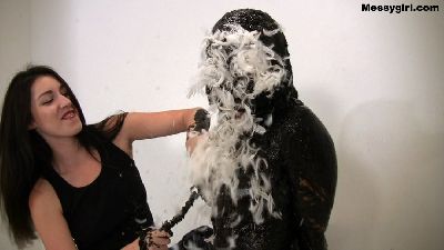 Amy has hired Vika to help her test the durability of novelty gag gifts. Amy wants to see if they will hold up to messy pies and slime pours. So poor Vika has to endure the humiliation of being a messy guinea pig.