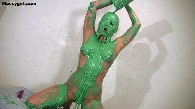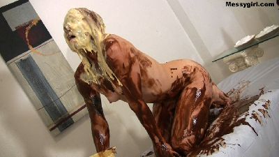 Christina goes all out as she slathers herself head to toe in pies, slime and chocolate.