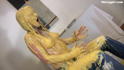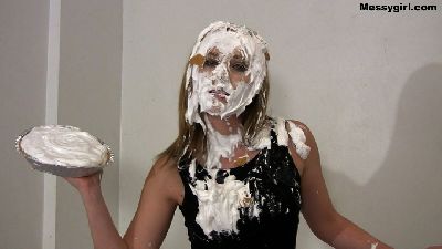 Glamour model Nicole arrives and finds a note with a pile of clothes. She follows the instructions and changes into the clothes supplied for her. She then waits patiently. When she says this shoot is going to be easy as pie, she gets a pie to the face. She continues to get pied to her dismay. She then wants to leave, and when she takes off her top, she gets pied again and covered in custard slime. She then gives in and tells the producer that he is about to see for himself, just how much of a messygirl she really is. Nicole gives him a personal messy performance that he will soon not forget. The transformation from a glamour model into a fetish performer is a sight to behold.