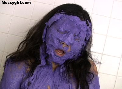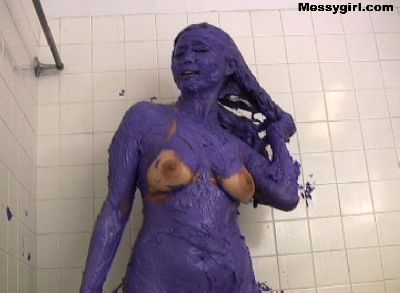 Sexy Vivian covers herself head to toe in purple butter cream. She then showers it off.