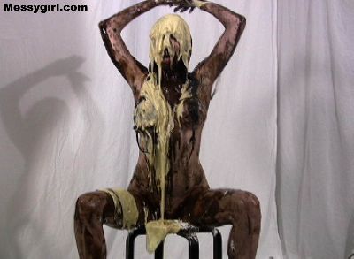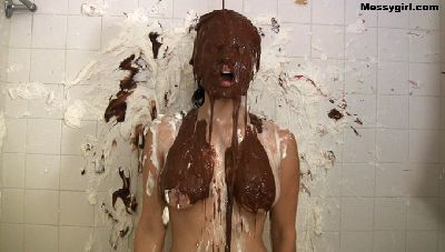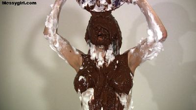 Video of Vicky covered in butter cream and chocolate