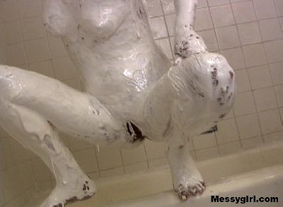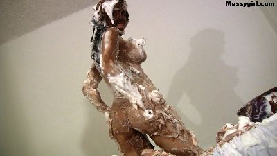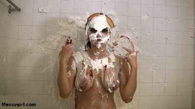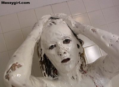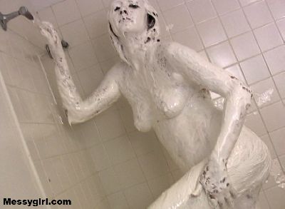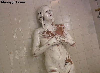 Star covers herself head to toe in sticky marshmallow cream and then washes it off in the shower.