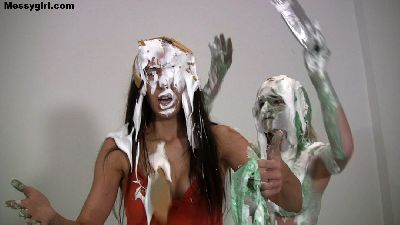 Video of Liz and Lane covered in marshmallow cream