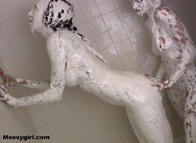 Liz and Lane cover each other in marshmallow cream head to toe. A very hot shower scene follows.