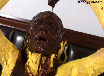 Video of Ashley pied and slimed while tied to a chair