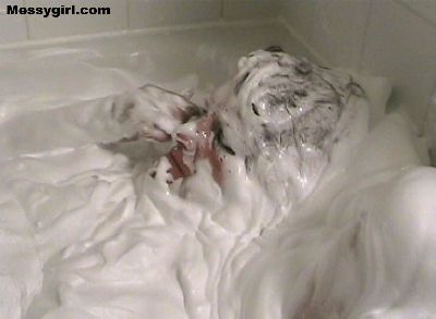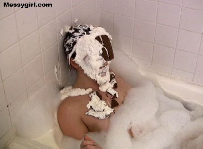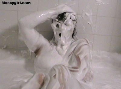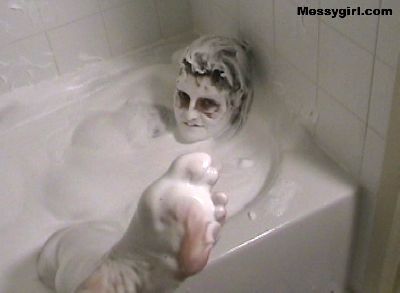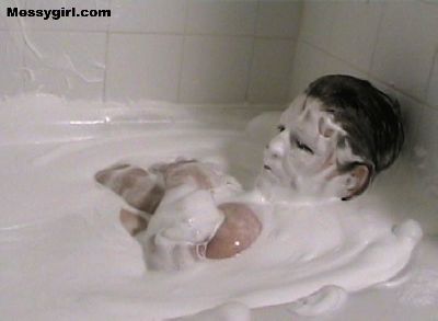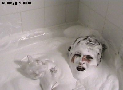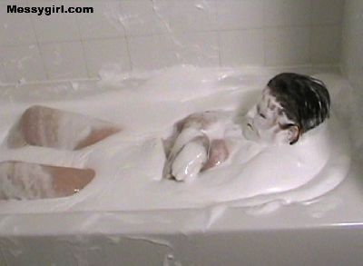 The original Messygirl takes a relaxing cream bath.