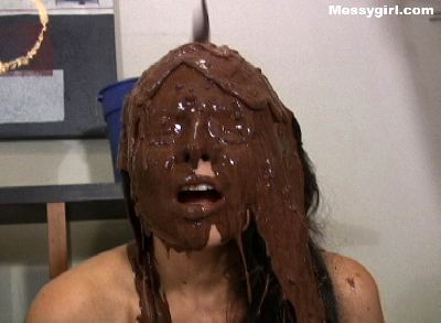 Video of Fae getting coating in chocolate