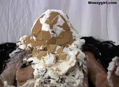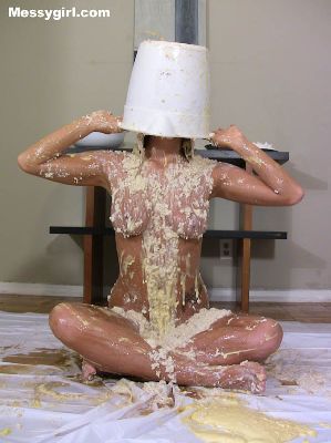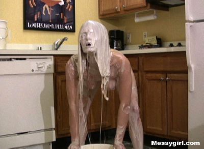 Sexy Angela takes on gallons of batter slime as she sits nude in the bath tub. Her pretty face is engulfed in the thick mess.