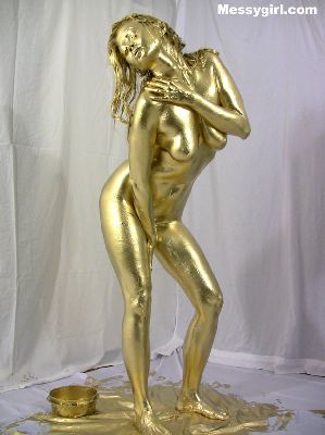 Sexy Asian babe Vivian is covered head to toe in gold paint.