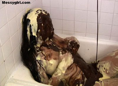 Jasmine takes a bath and then drains the water for a good old fashion sliming with batter, pudding, chocolate and ice cream!