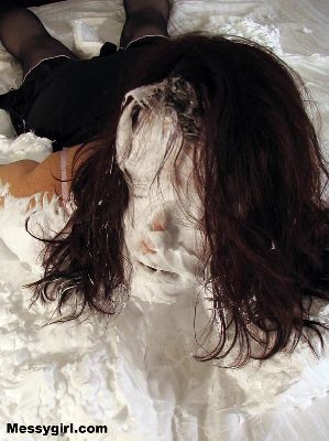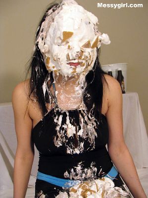 Busty and sexy Tribeca does her first every messy shoot. She didn't know what she was in for, but after the pies creamed her face she loved it!