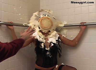 Busty Kordelia is back for more messy fun. This time she is hogtied and covered in pies and slime.