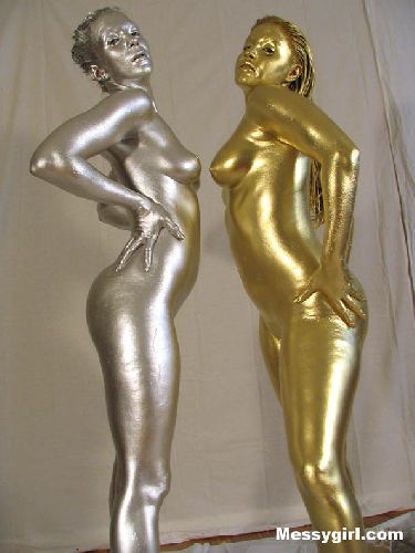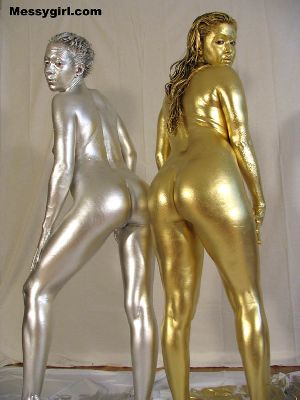 Ariel and Nikki are painted in gold and silver! They then smear it all over each others nude bodies!