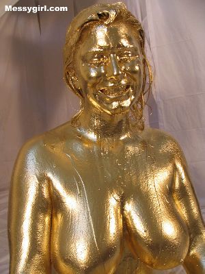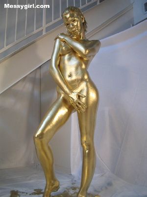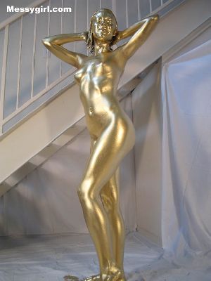 Cute and sexy Allison is covered head to toe in gold paint! A rare chance to see her nude!