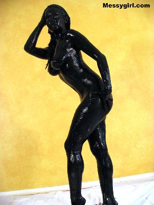 Sexy Liz is covered head to toe in black grease paint!
