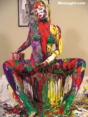 Liz becomes a human canvas! She uses many colors to make herself into a living work of art!