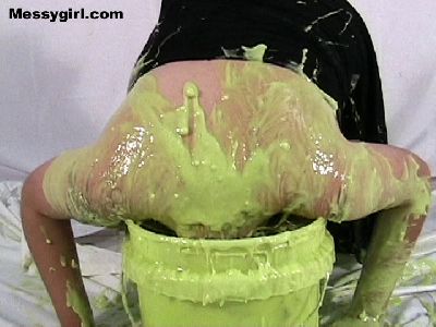 Sexy Katies goes head dunking in a 5 gallon bucket of green slime!